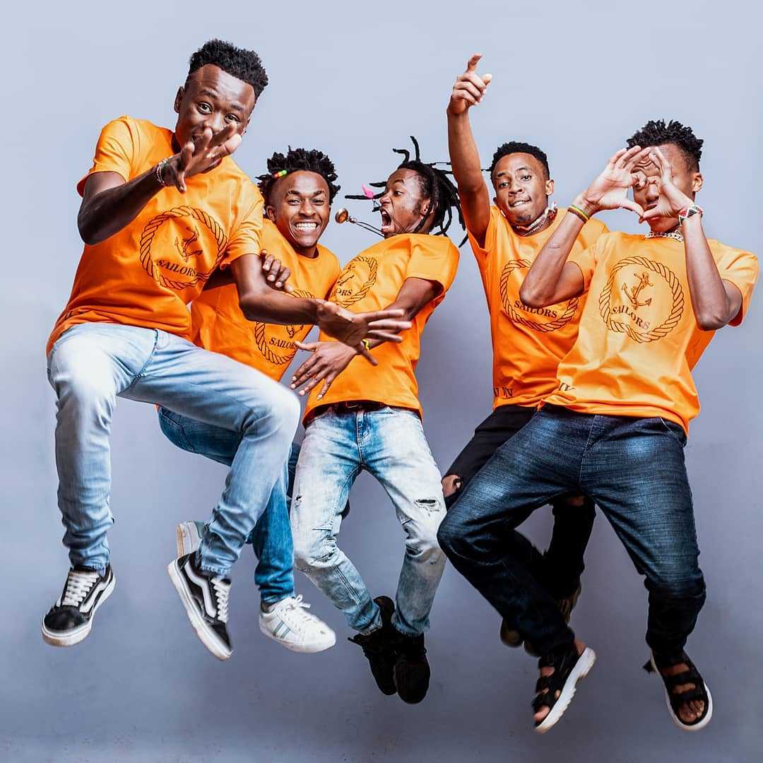 Sailors gang is an energetic group that is made up of five artistes; Miracle Baby, Masilver, Lexxy Young, Shalkido and Qoqosjuma. The group is well known for hit songs such as 'Queen Bee Machine', 'Wainame', 'Wamlambez' and 'Pekejeng' among others.